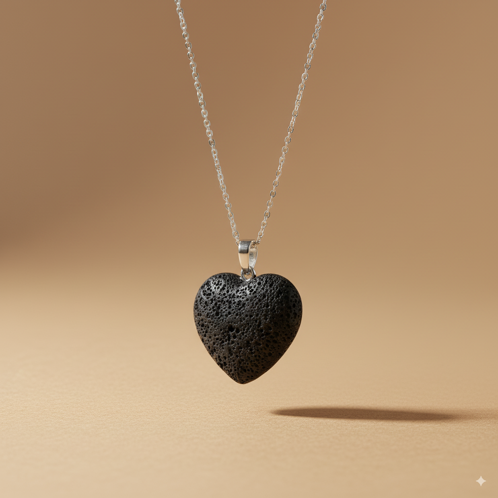 EKI Lava Corazón es un colgante de aromaterapia tallado a mano en piedra volcánica de Lanzarote. Su porosidad natural permite absorber unas gotas de aceite esencial y difundir el aroma de forma suave y duradera.